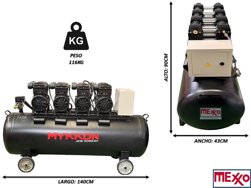 COMPRESOR SILENCIOSO 8HP, 230 LITROS MYKKON JAPON, TECNOLOGÍA CARTER SECO (OIL LESS)