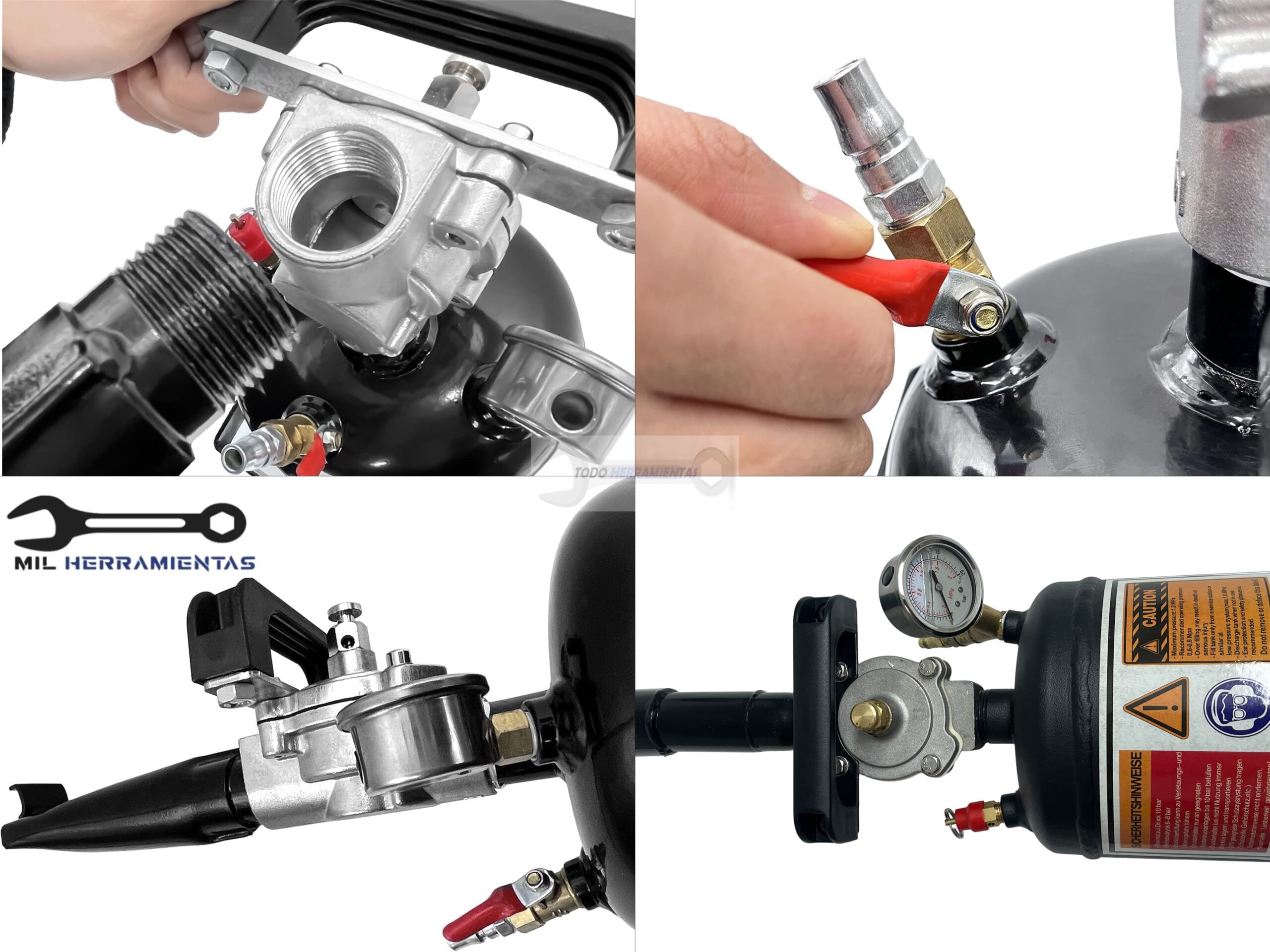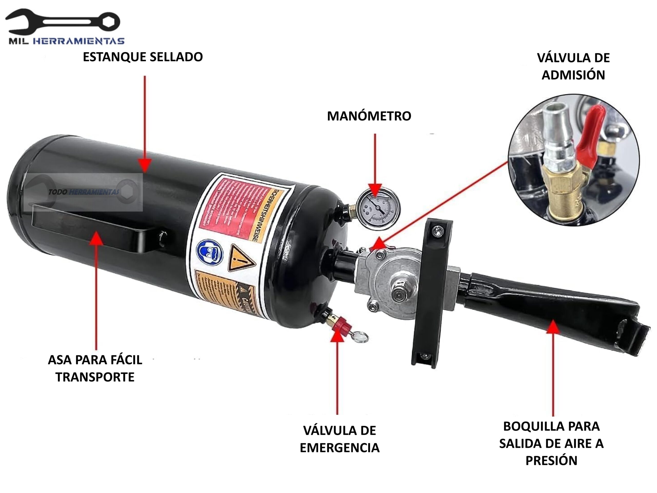 El asiento del talón del neumático está equipado con un manómetro que puede ayudar a leer y ajustar la presión de aire de varios vehículos con mayor precisión. La presión de trabajo del asiento del talón es 0.6-0.8MPa (87-116PSI). El asiento del talón del neumático está diseñado con una válvula de seguridad. Cuando la presión de aire supera los 0.8MPa, la válvula de seguridad se abrirá automáticamente para aumentar la seguridad.