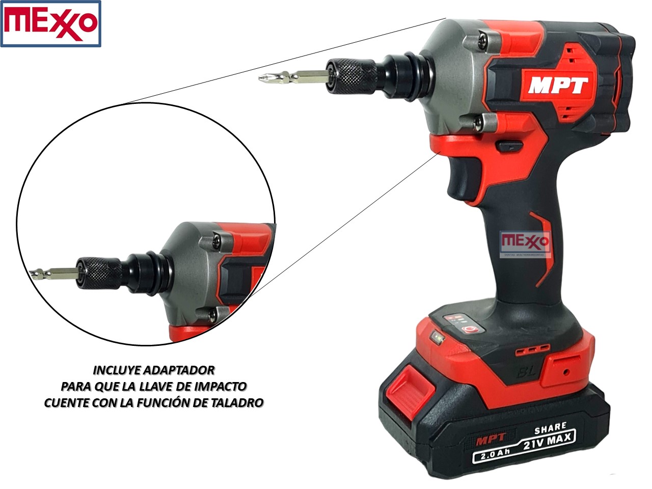 La Llave de Impacto Inalámbrica de 21V MPIW2138.B2 de MPT es una herramienta que aporta potencia, comodidad y compatibilidad a tus tareas diarias gracias a la tecnología de vanguardia de MPT.