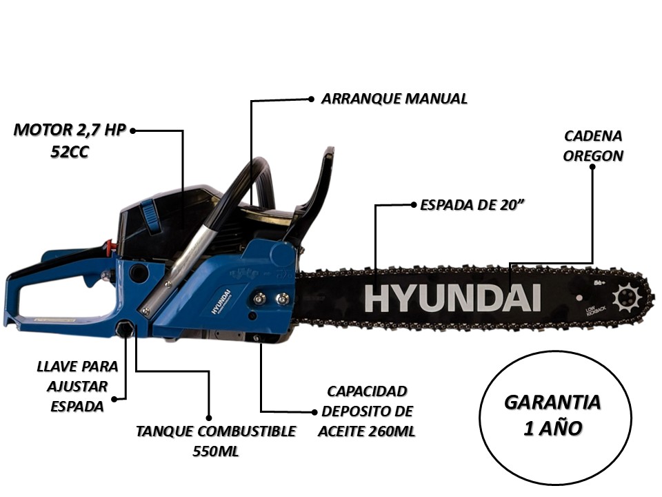 La motosierra Hyundai 82HYCS5200B está diseñada para ofrecer potencia, eficiencia y durabilidad en cada tarea de corte. Equipada con un robusto motor de 2 tiempos y una cilindrada de 52cc, esta herramienta es ideal para trabajos intensivos como tala de árboles, trozado de madera y labores forestales exigentes.