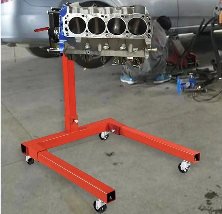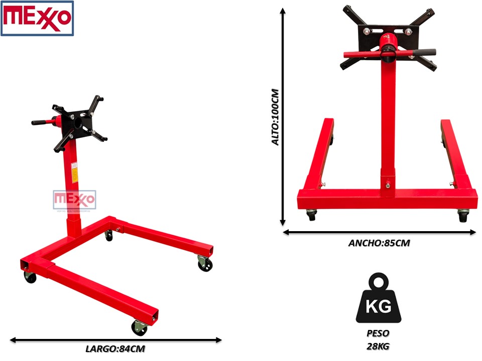 Este soporte para motor de alta resistencia es la herramienta ideal para realizar trabajos de reparación y mantenimiento de motores. Con una capacidad de carga de hasta 680 kg (1500 lb), está diseñado para soportar motores de diferentes tamaños y pesos de manera segura y estable. Equipado con un sistema giratorio de 360 grados, permite una rotación completa para facilitar el acceso a cada parte del motor. Su construcción en metal reforzado y su base con ruedas giratorias aseguran una movilidad y durabilidad excepcionales, mientras que sus brazos ajustables se adaptan a distintos tipos de motor. Este soporte es indispensable en talleres y garajes que buscan seguridad, funcionalidad y eficiencia en sus labores de mecánica.