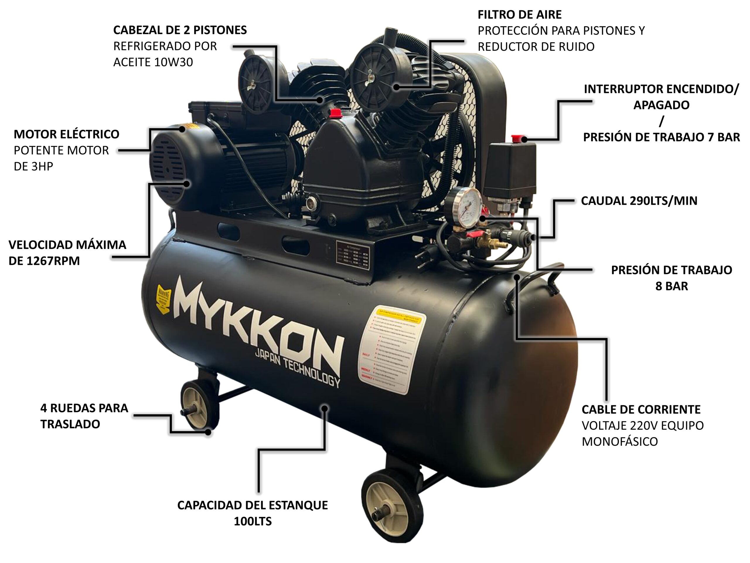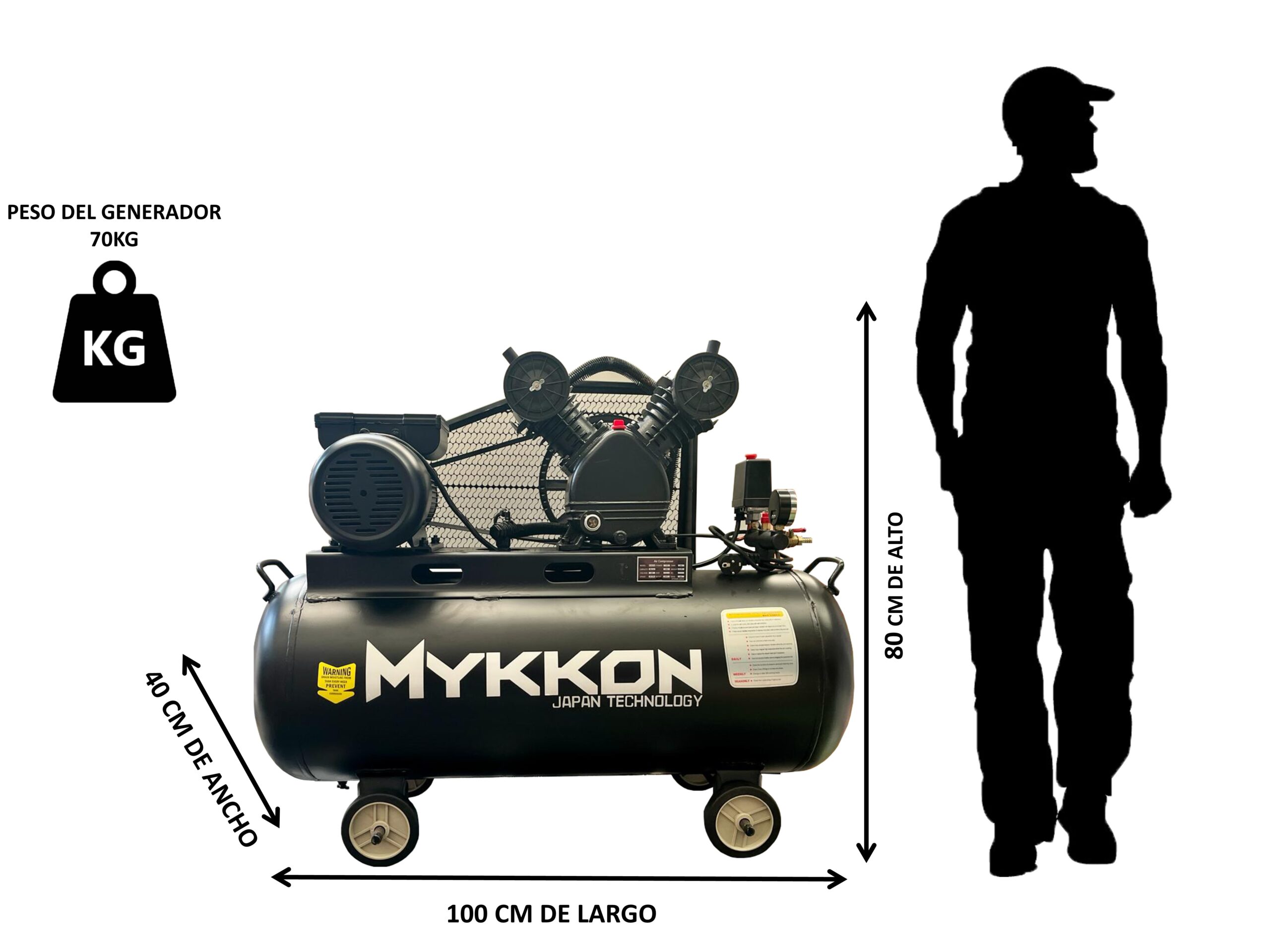 COMPRESOR INDUSTRIAL ESTANQUE 100 LITROS 3HP, MARCA MYKKON MONOFÁSICO.