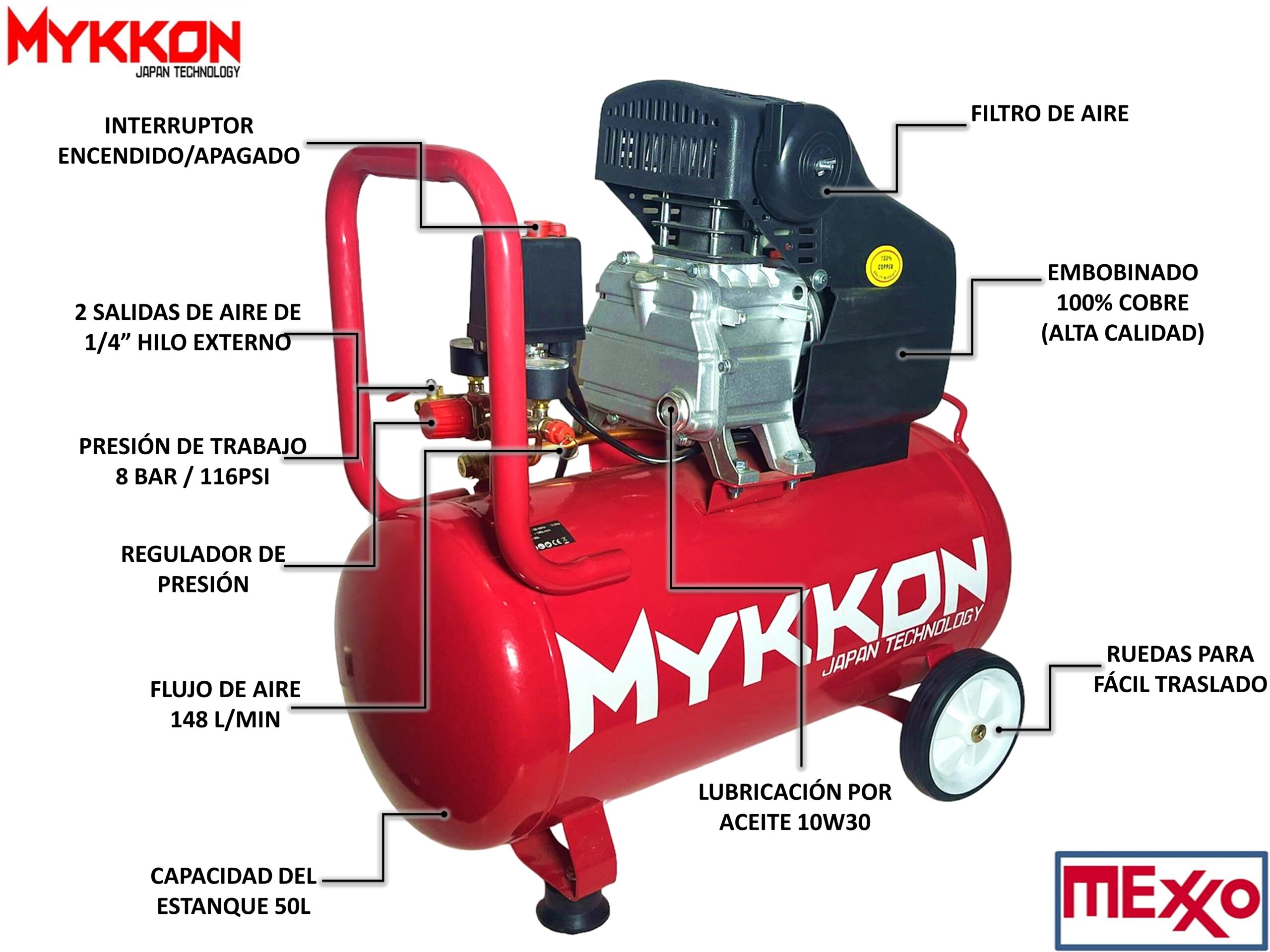 COMPRESOR LURICADO POR ACEITE MARCA MYKKON CAPACIDAD 50 LITROS 2,5 HP