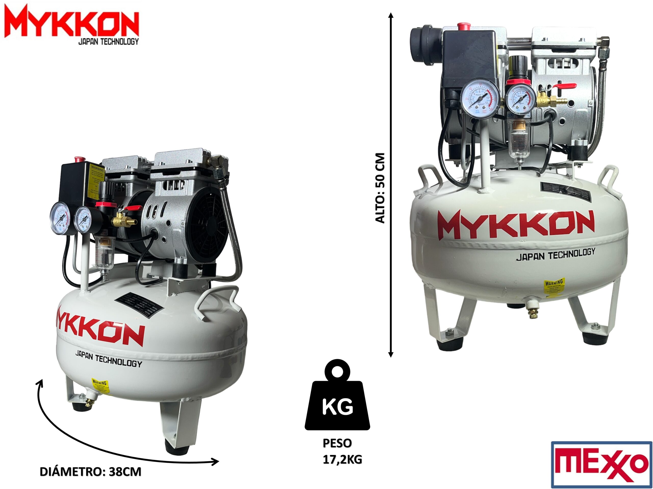 COMPRESOR DENTAL SILENCIOSO 46 DB, 25 LITROS 1.5 HP GARANTÍA 1 AÑO MARCA MYKKON