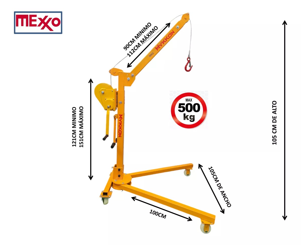 Nuestra grúa manual de 500 kilos es la solución ideal para el levantamiento y traslado de cargas pesadas en talleres, almacenes y obras de construcción. Diseñada para ofrecer robustez y seguridad, esta grúa cuenta con una estructura de acero resistente