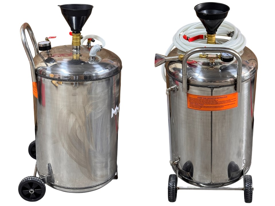 El espumador para autos 80LT Mykkon está diseñado para brindar una limpieza profunda y profesional en el lavado automotriz. Su estructura de acero inoxidable garantiza máxima resistencia, durabilidad y protección contra la corrosión, convirtiéndolo en una herramienta confiable para talleres, lavaderos y servicios de detailing.