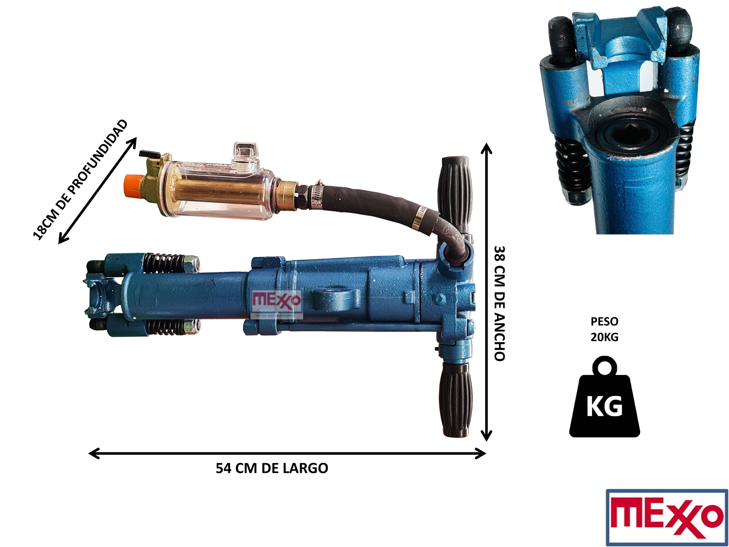 El taladro de roca neumático se usa ampliamente en la conducción de pozos de perforación en carreteras, mineras, construcción y una variedad de trabajos de ingeniería, metalurgia, carbón, ferrocarriles, tráfico, conservación de agua y proyectos de defensa nacional. Esta máquina es ideal para trabajos medianos de perforación en roca dura o húmeda con orificios horizontales o inclinados. Posee una profundidad de perforación efectiva de hasta 5 metros.